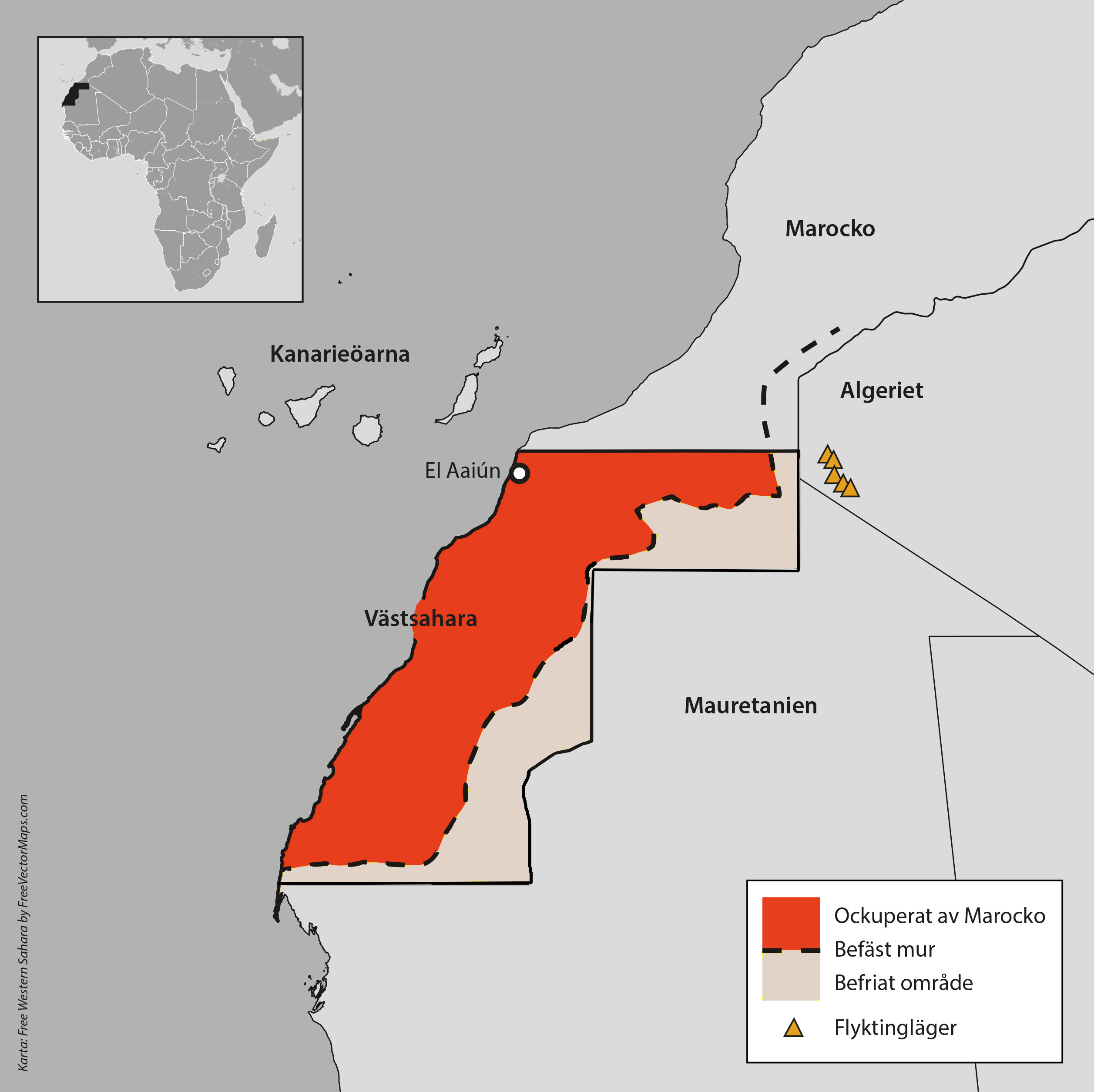 Marocko har byggt en drygt 270 mil lång minerad mur som delar Västsahara i två. Marocko kontrollerar de två tredjedelar av Västsahara som ligger innanför muren och Polisario (den västsahariska befrielserörelsen) administrerar den tredje delen.